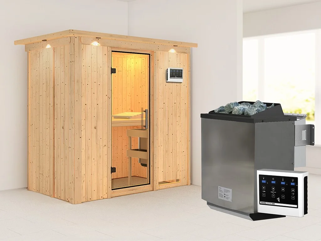 Unsere Wellnessartikel (Saunen, Saunahäuser, Saunafässer, Kotas, Infrarotkabinen, Saunaöfen etc.) dürfen nur für den privathäuslichen Gebrauch verwendet werden! Saunaöfen und dazugehörige Steuerelemente dürfen nur durch einen örtlich zugelassenen Elektroinstallateur mittels festem Anschluss an das Netz angeschlossen werden. Ausnahme: 230 Volt Plug-&-Play-Saunaöfen. Die Mindestsicherheitsabstände vom Ofen zur Wand und vom Ofen zum Ofenschutz müssen unbedingt eingehalten werden. Bei 9-kW-Öfen muss die Höhe des Ofenschutzes angepasst werden. Bitte beachte zu den obig genannten Hinweisen die beigefügten Montageanleitungen.