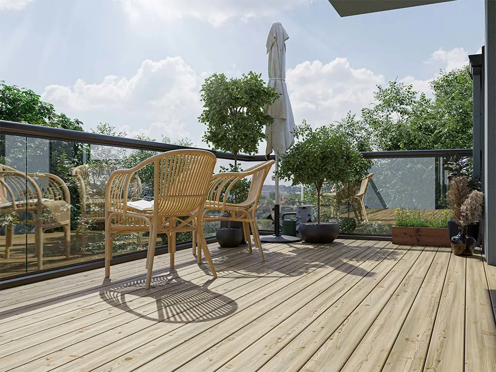 Die glatte Oberfläche der Terrassendiele verhindert das Absetzen von Schmutz und macht die Reinigung besonders einfach. Zusätzlich erlaubt sie das Abschleifen der Oberfläche und somit auch die Ausbesserung der kleinen Beschädigungen und angegrauten Stellen.