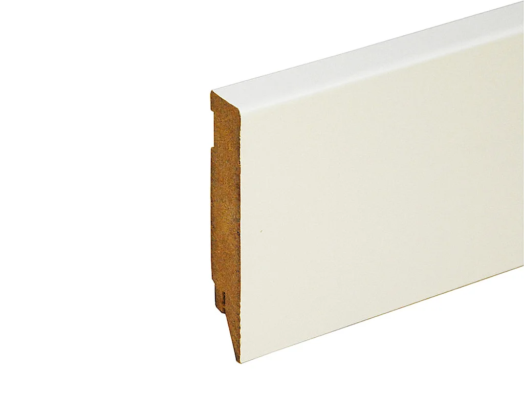 Sockelleisten mit stabilem MDF Kern und lackierter Oberfläche.
