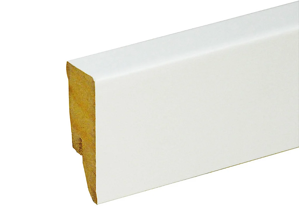 Sockelleisten mit stabilem MDF Kern und lackierter Oberfläche.